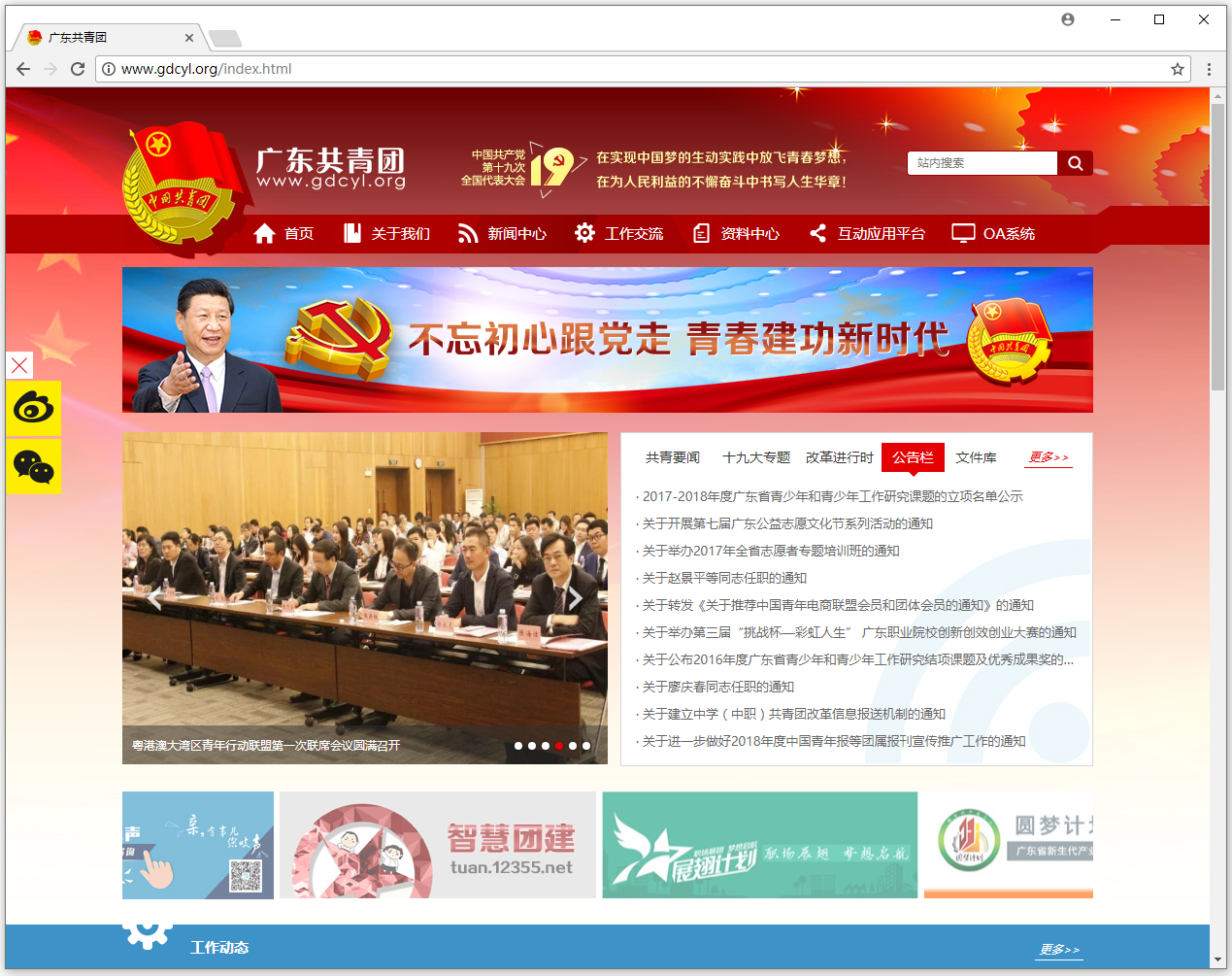 共青团广东省委员会对外信息门户平台,承当下设十多个业务部门的新闻公告、数据公开、文件资料的对外发布,展示各地市工作成果,提供各种在线办事等功能。