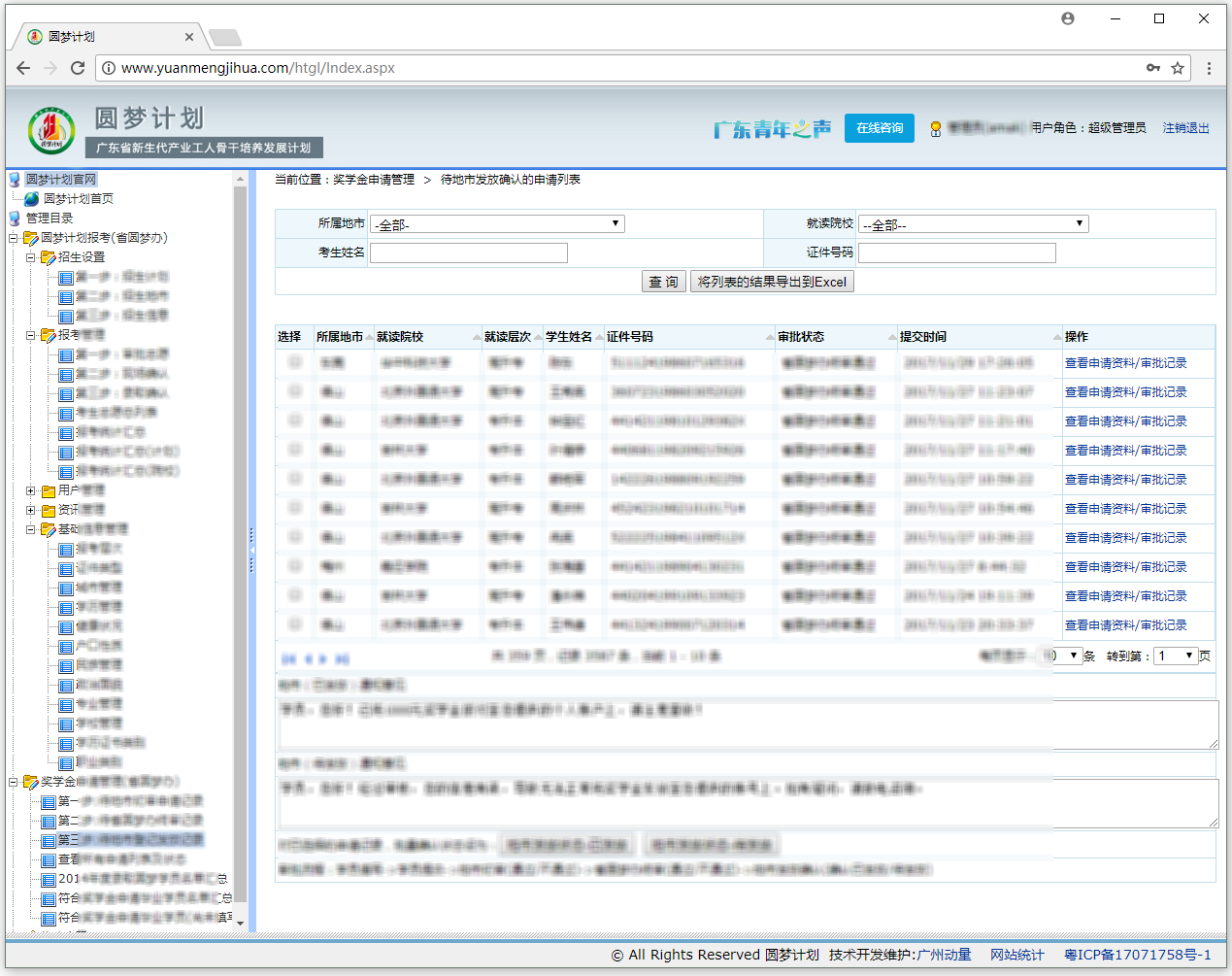 服务广东务工人员,报读大学继续教育业务以及奖学金业务。依据具体业务需要,实现信息发布、学员报考、高校录取、地市审批、省圆梦办数据管理等报考业务和奖学金申请发放业务。具备电脑版、手机版,满足多终端使用。